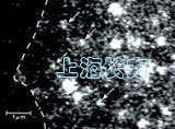 | The above image shows the basal plane of ECV304cells expressing the fusion protein GFP-AP-2.AP-2 is an adapter protein that localizes with clathrin coated pits ,The fluorescence emission (bright spots in the image) correlates with the number of pits observed. The edges of the cell are indicated by the dotted line and the arrows indicates sing molecules of GFP-AP-2 localized at the cell membrane. The scale bar is 1μm. |