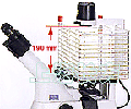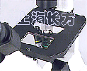 高效、方便用户的载物台设计:台面高度为195mm的低位设计,特别适于将显微镜言辞在实验台上或防尘罩内进行操作。由于卸下聚光器装置以后,载物台上方有190mm的空间可以用来安放大型容器,所以除此之外,在载物台上靠近使用者一侧,还设计啬了一块聚丙烯窗板,使用者无需移开标本 就可确认当前使用的物镜。粗微调焦旋钮前置,更靠近用户,使在高倍率下的操作更有效、更方便。 |